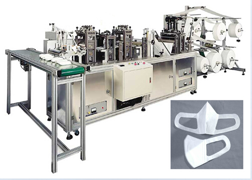 A special design to produce 3-D masks with filter media with full automation. Its highest capacity achieves 80 pcs/ min.It is so easy to change different welding rollers or cutting rollers to make different kinds of 3-D masks. With elastic non-woven-material-made comfortable ear-loop, these filter masks are suitable for high pollution industry for its high PFE features.